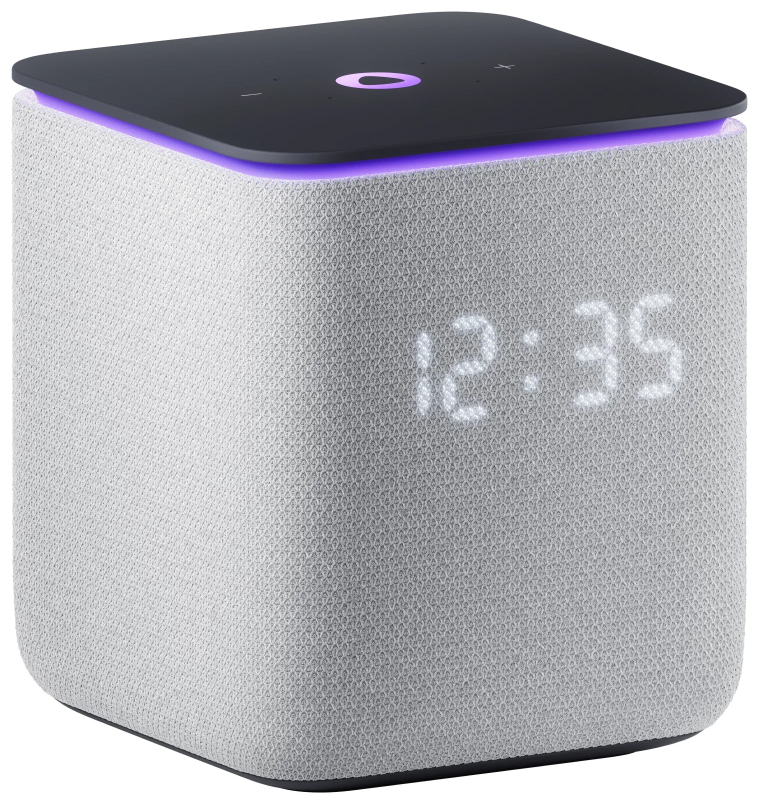 Приятный корпус с тканевой отделкой, доступный в разных расцветках текстильной части, не только придает колонке стильный внешний вид, но и создает приятные тактильные ощущения. Он также защищает динамики и слегка смягчает звук, а встроенный экран эффектно светится прямо на текстильной стороне.